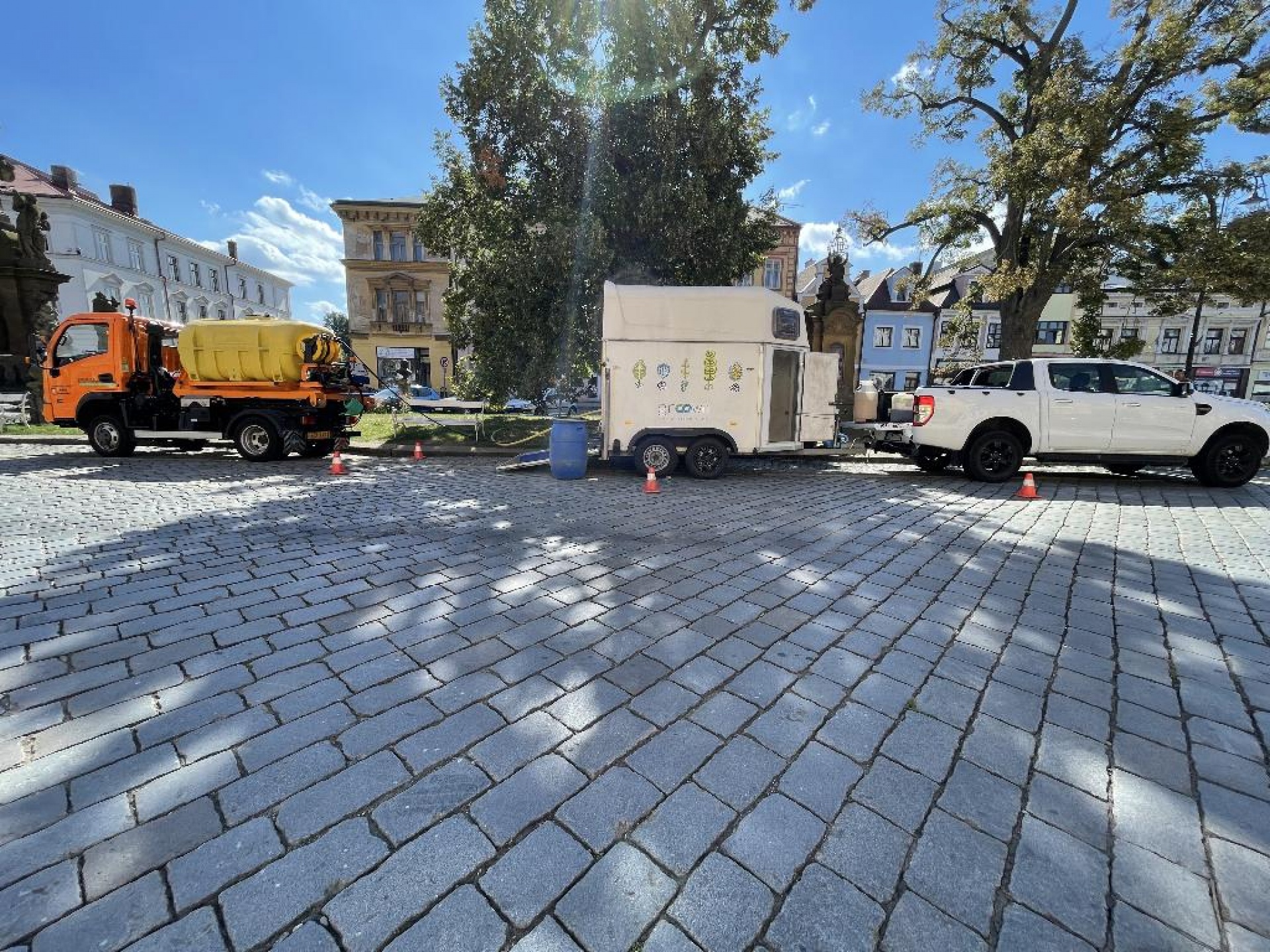 Odborná firma GROOWN s.r.o. aplikovala ošetření stromů, dvou lip na náměstí, půdní injektáží - provzdušnění půdního prostoru kolem kmene stromu, injektáž organických živin a prospěšných mikroorganismů, působících dlouhodobě v kořenovém systému stromu. Tímto ošetřením se dosahuje zvýšené vitality stromů. Tyto dvě lípy zde byly vysazeny v roce 1907, právě proto jsme přistoupili k takovému způsobu ošetření, abychom je tady zachovali co možná nejdéle.