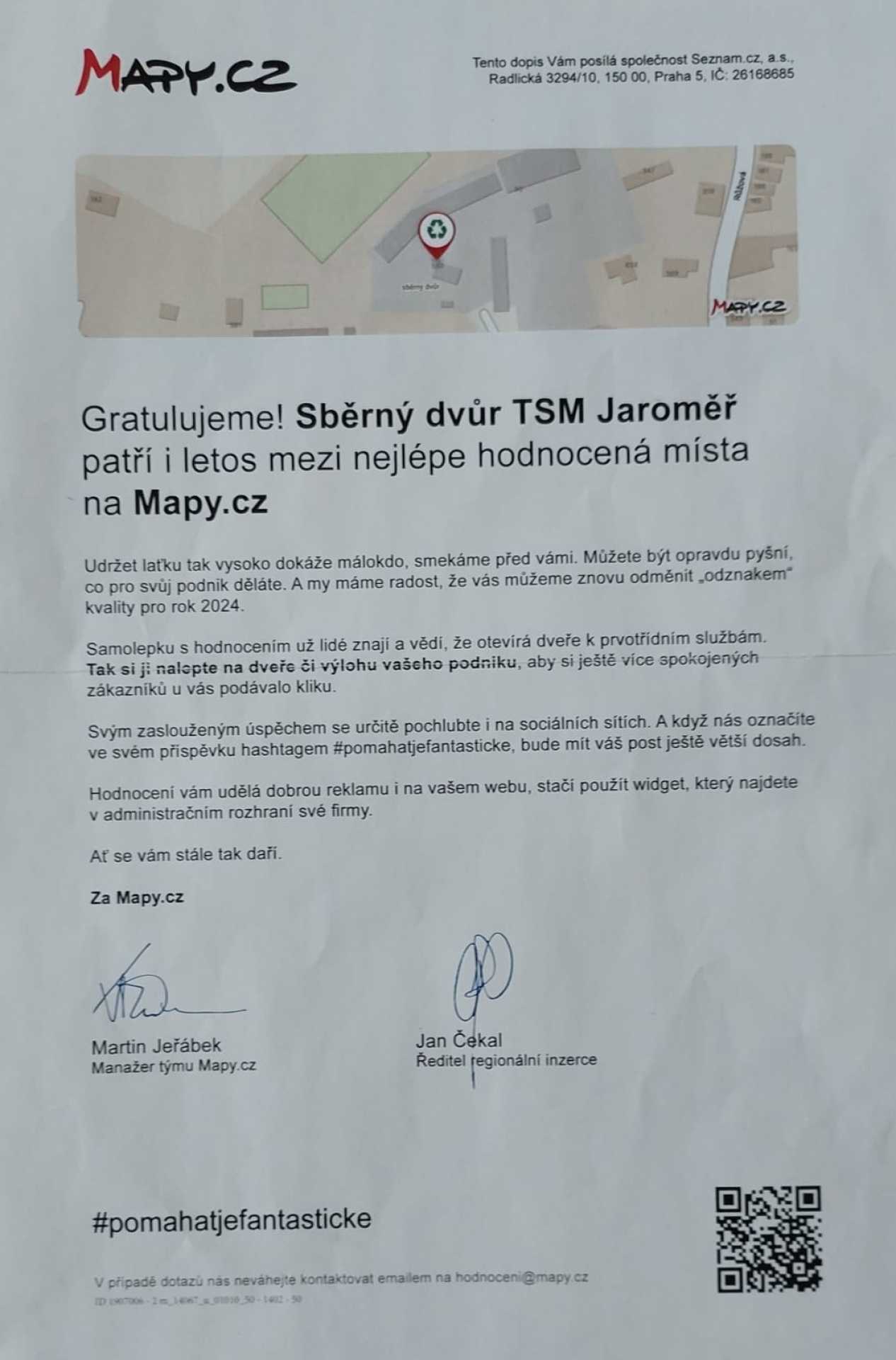 Náš sběrný dvůr v Jaroměři byl nyní vyhodnocen v rámci nejlépe hodnocených míst